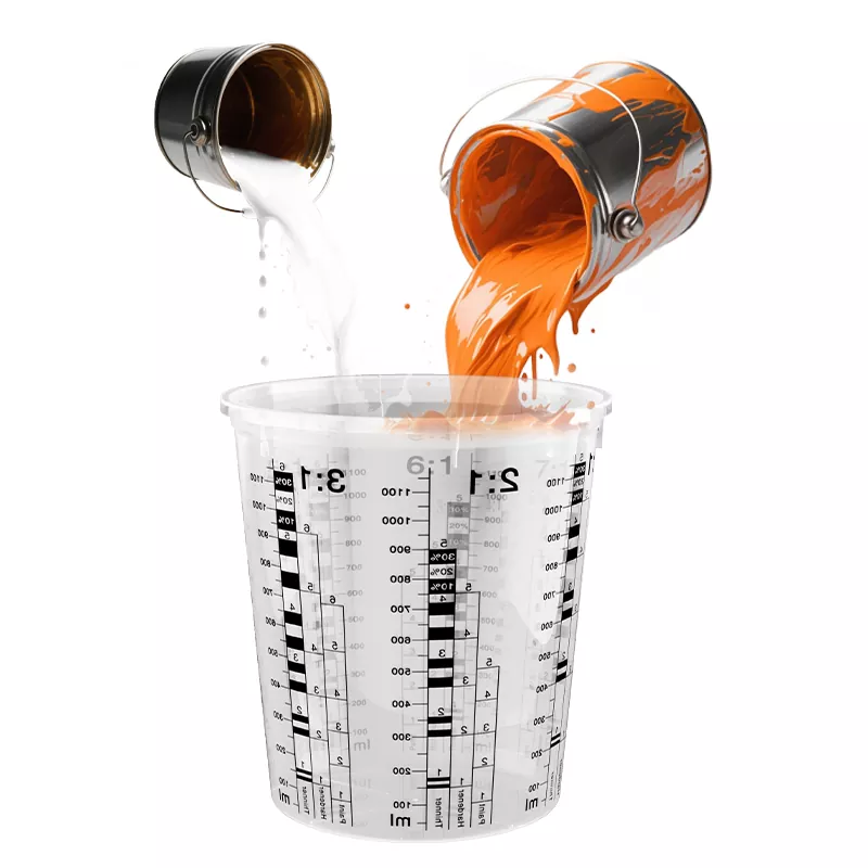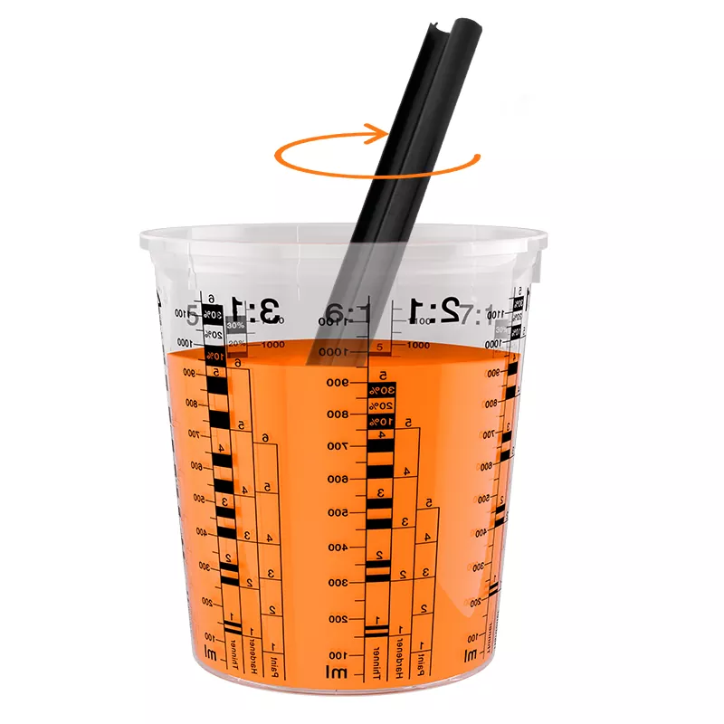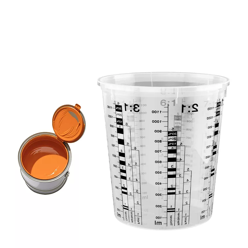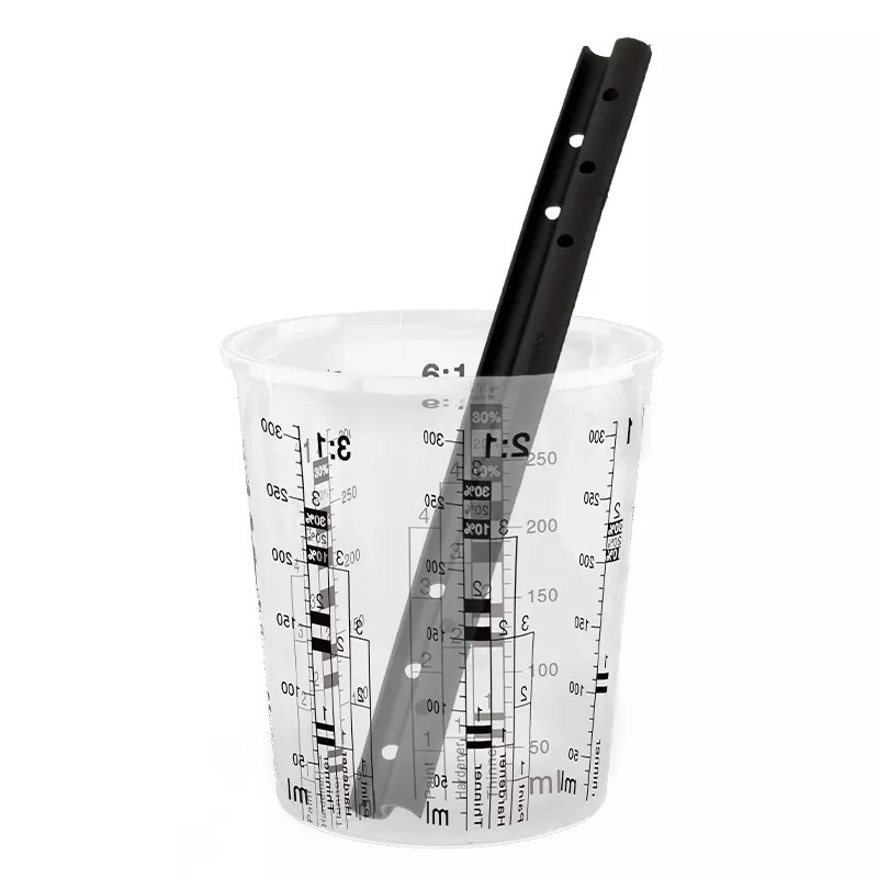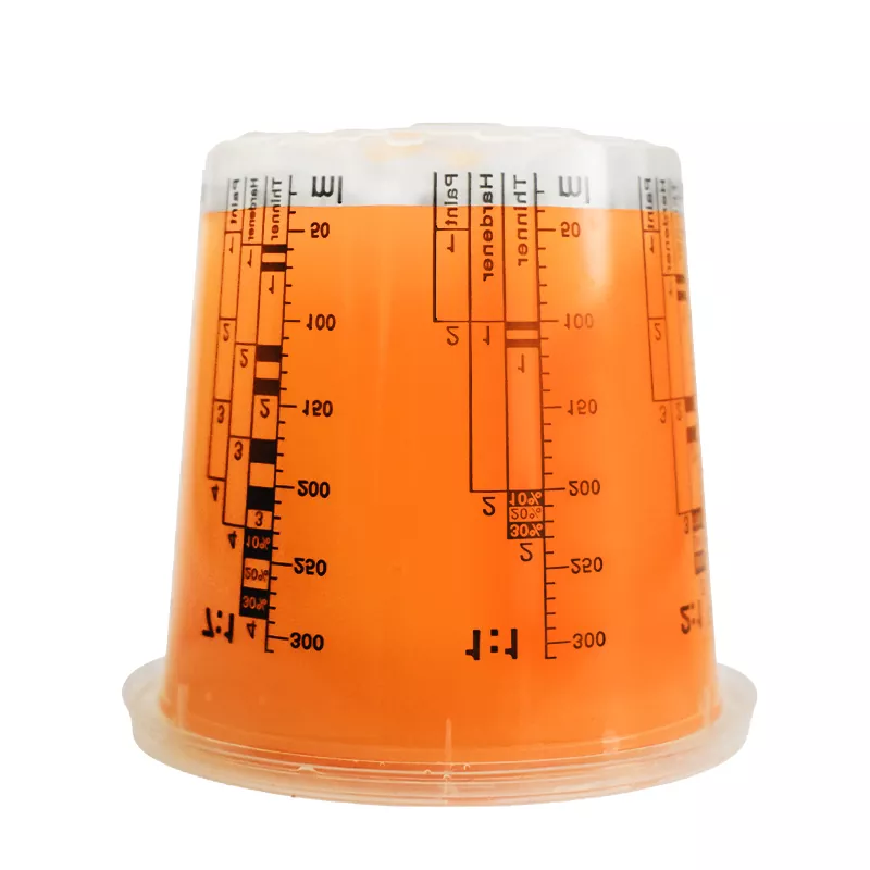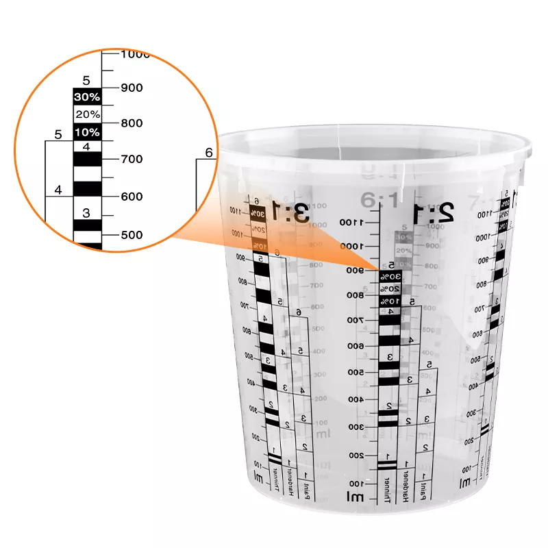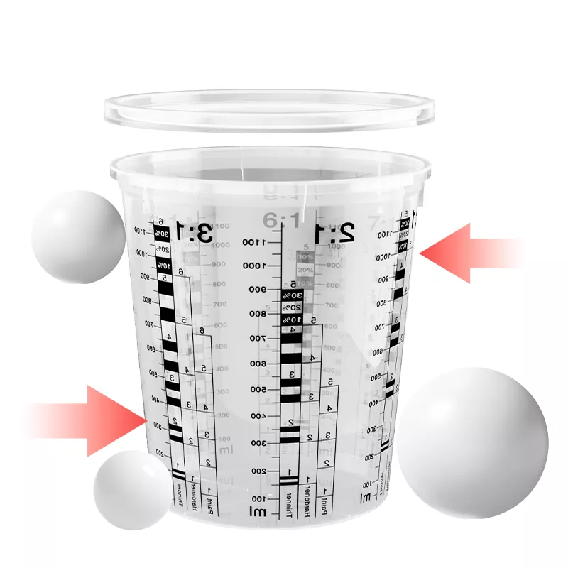 385 ml PP autófestékkeverő pohár fedővel festékkeveréshez és a kevert festék ideiglenes tárolásához. 7 különböző keverési arány, jól nyomtatott és belülről olvasható. Kiváló minőségű festékkeverő pohár fedővel, fedél külön is megvásárolható. Öt kapacitást kínálunk – 385cc, 680cc, 1370cc, 2250cc és 5000cc - minden igényt kielégítve.