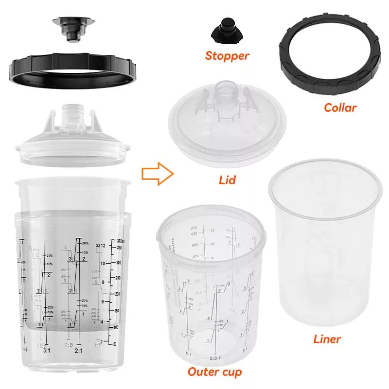 Minden egyes összetevője aAYSPATA 400 ml-es szórópisztoly csésze vadonatúj PP és PE műanyagból készült. Fejlett gyártóberendezésekkel, valamint egyedi fröccsöntési eljárással rendelkezünk, amely lehetővé teszi, hogy az egyes komponensek együtt dolgozva tökéletes terméket állítsanak elő.