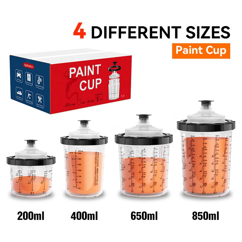 A piackutatás alapján a Paint Cup négy kapacitás-előírással érhető el: 200 ml, 400 ml, 650 ml és 850 ml, különféle felhasználási forgatókönyvek kielégítésével, akár nagy területű permetezéshez, akár részletes érintéshez. Ezenkívül a belső csésze szerkezetét optimalizálták a sima festékáramlás biztosítása érdekében, csökkentve az eltömődést és a hulladékot.